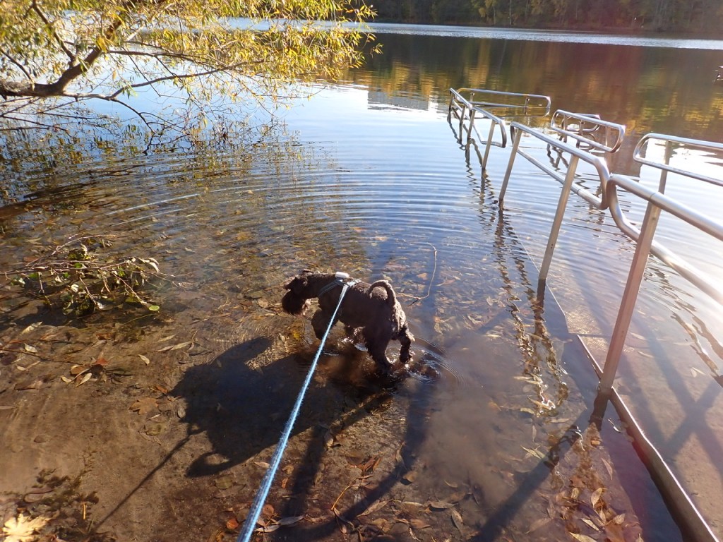 Troy tjatar, han vill bada men det får han inte för matte. Det blir en kompromiss han får bara gå i och plaska med tassarna. Ni undrar var jag är…. jag är självklart på torra land.