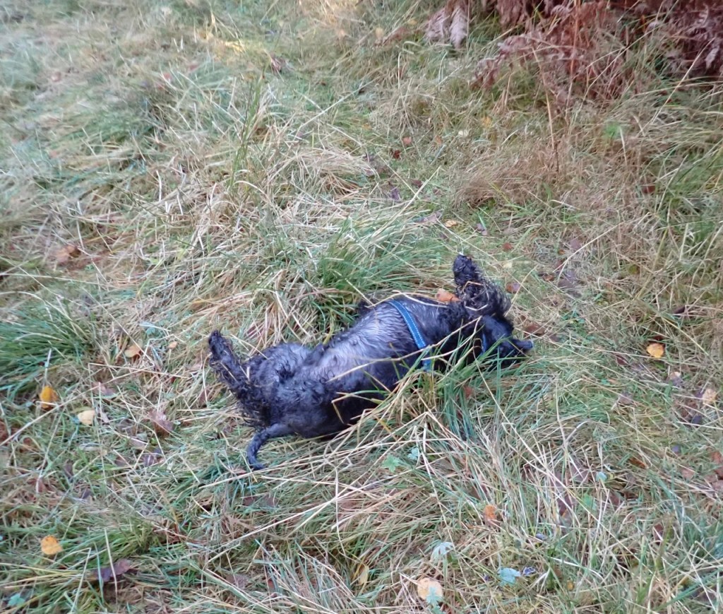 Härligt att vara på fria tassar. Vissa tog sig en smakbit på lite gräs som ligger kvar efter klippning.