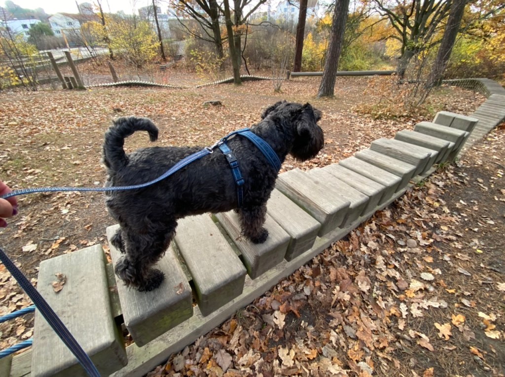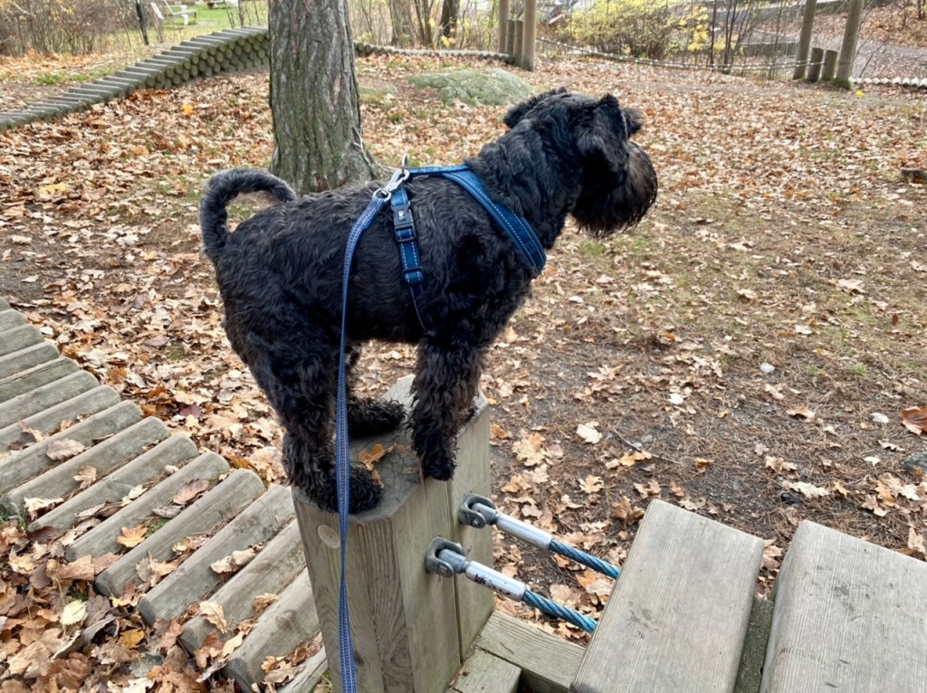 Ett nytt ställe med olika hinder, det var svårt att gå på träpinnarna men Troy fixade det galant.