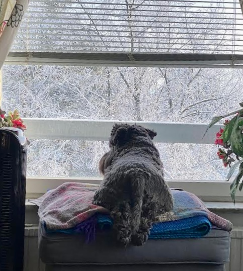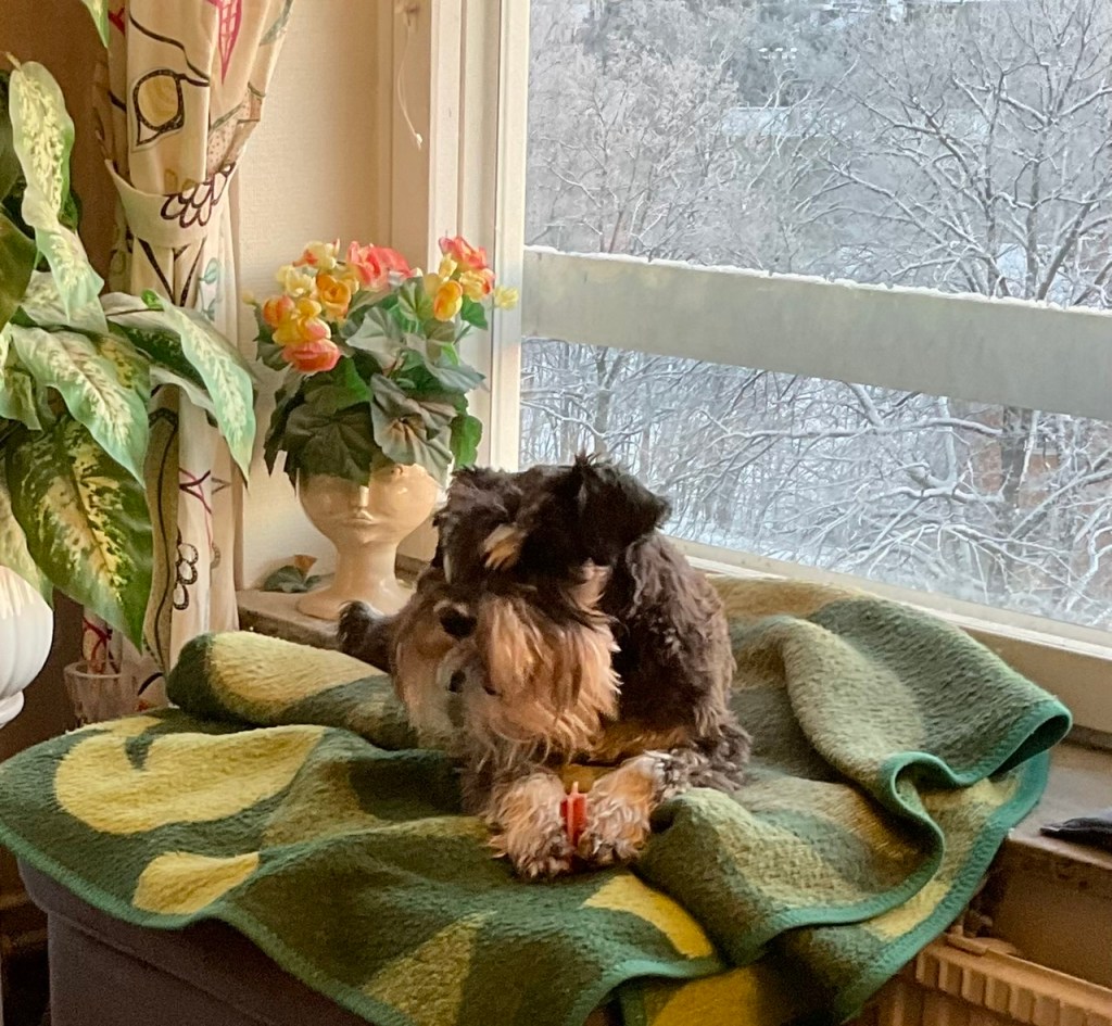 Jag förstår inte varför vi nödvändigtvis måste ut och nöta tass när termometern visar -12. Nej jag tänker inte gå ut på någon promenad jag stannar här på min fönsterplats och njuter av värmen från elementet. Att jag sedan fick en Dentastix till em kaffet är bara grädde på moset.