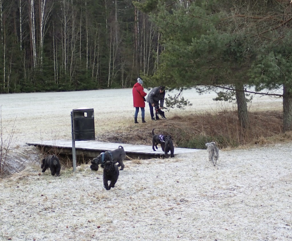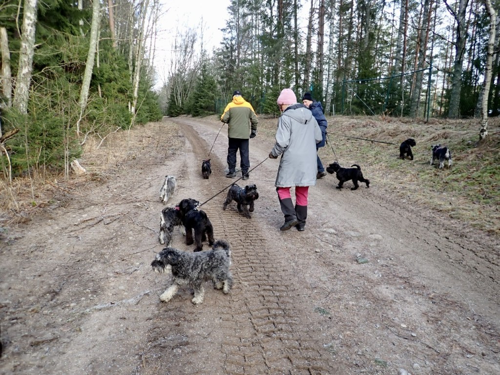 Tjoho vilken härlig dag vi skall på snuzzepromenad. Många snuzzar samlades på parkeringen vid Hanveden IP. Alla hundar hälsade högljutt på varandra.