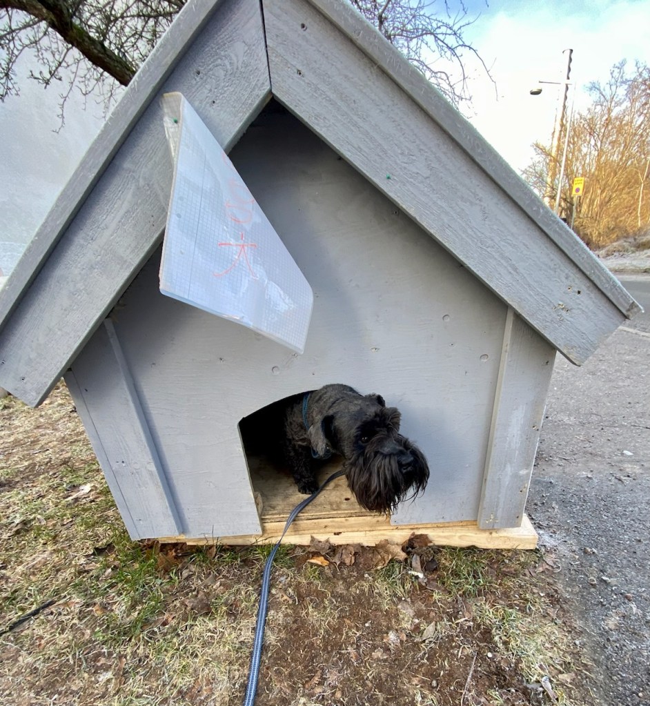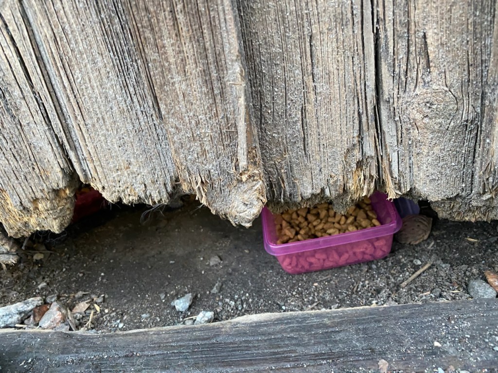 Matte! Någon har ställt in en bytta med torrfoder bakom husväggen och jag undrar vem det är som skall ha det. Kanske det är till oss! Jasså jaha inte det.