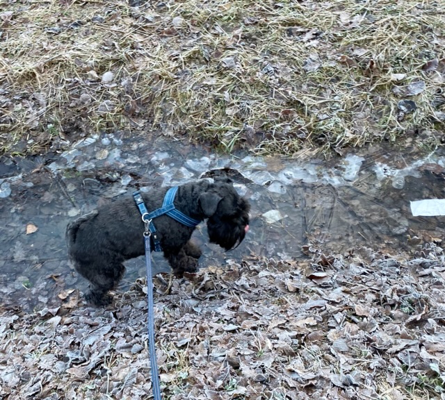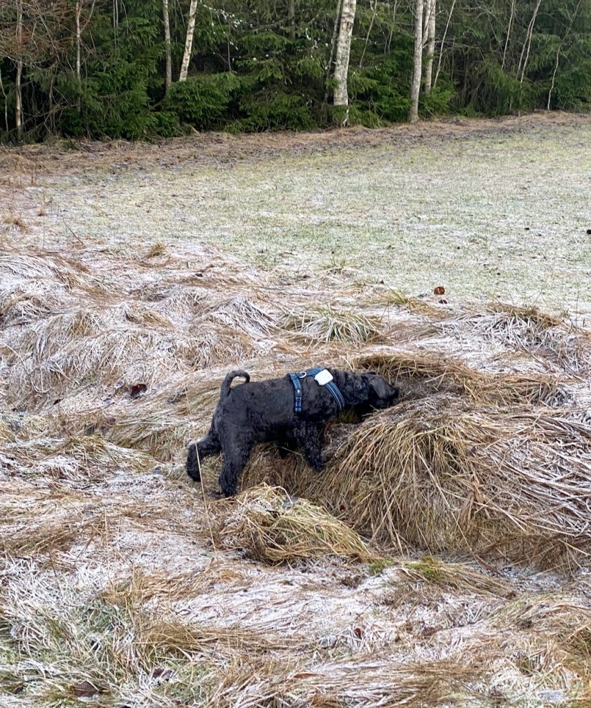 Mitt i promenaden gick Troy lite avsides för han hade fått korn på ett råttbo i närheten av ett dike. Det måste undersökas så matte fick ropa flera gånger innan han kom.Råttan var nog inte hemma för tillfället.