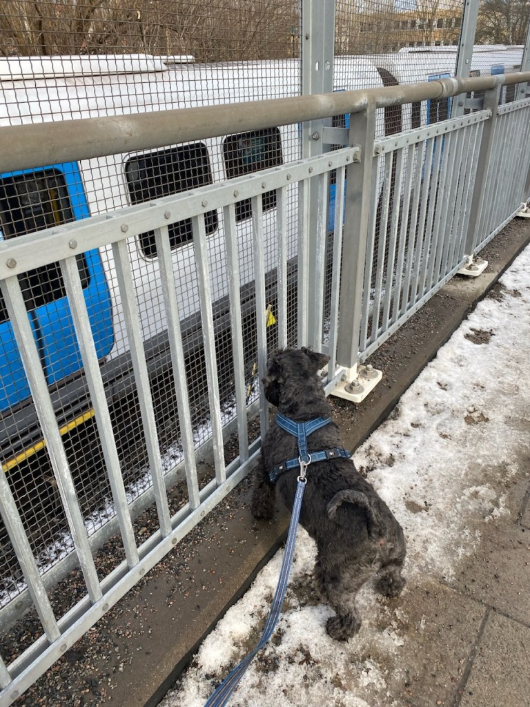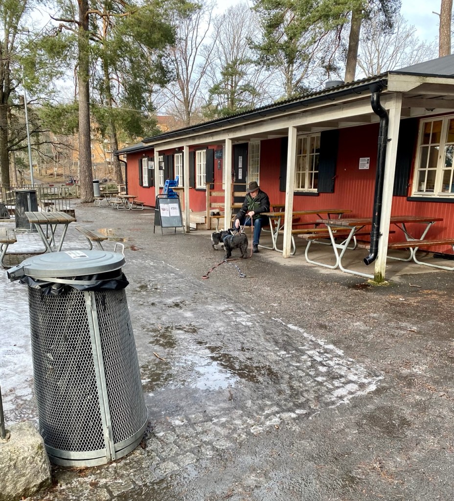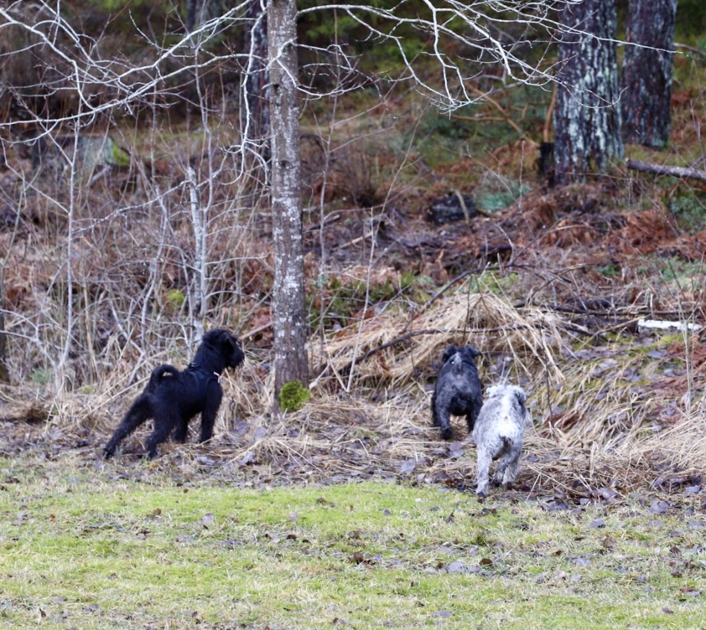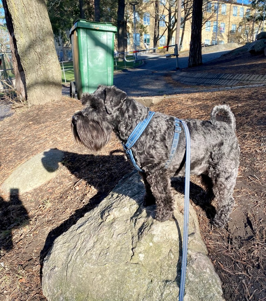 Nu känns det som liiite vår iallafall. Det blåser friska vårvindar i våra skägg och det är 5 grader varmt. Jag spanar in något lite längre bort. Stanna, sitt kvar säger matte och då gör vi det.