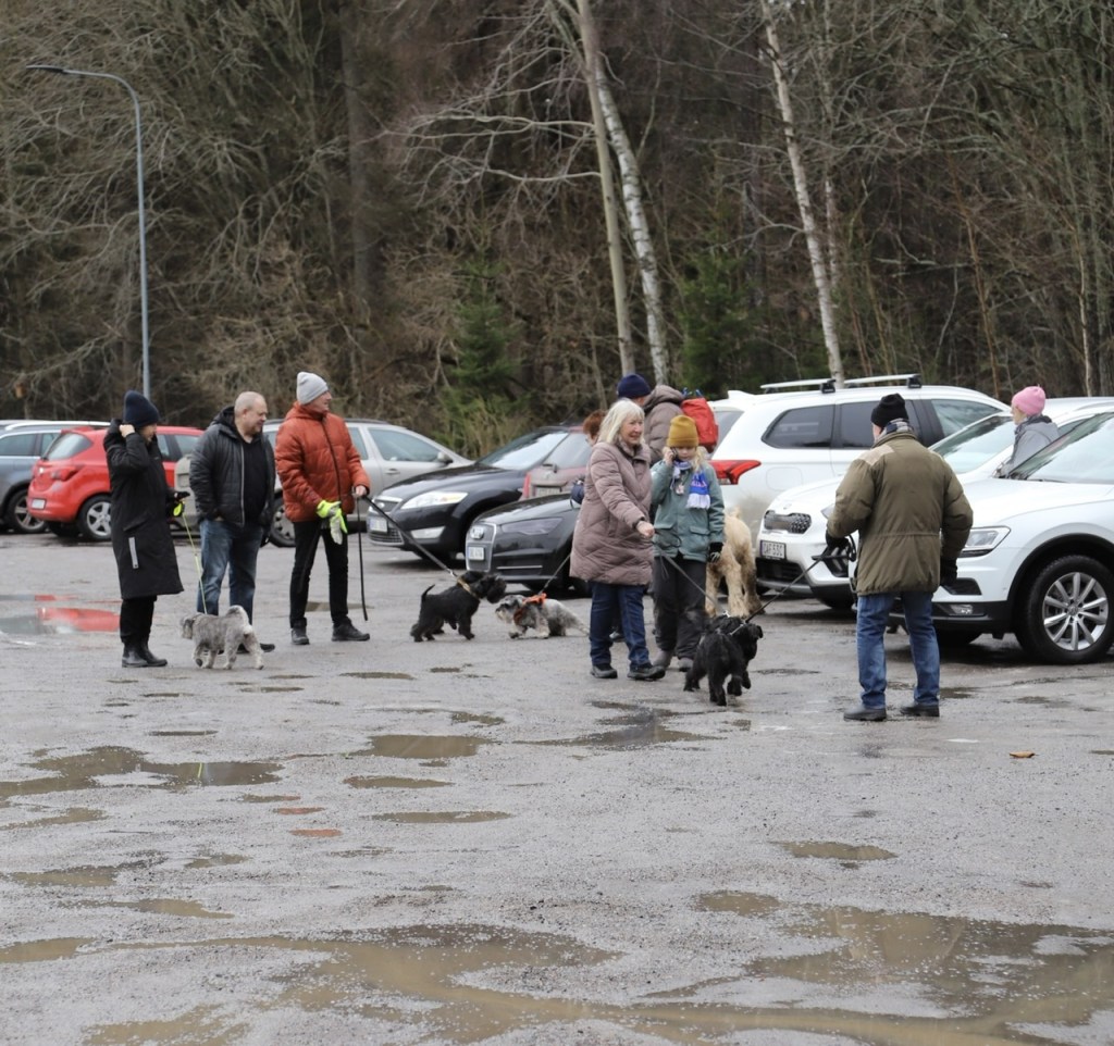 Lördag och lite annorlunda morgonrutiner. Iväg med bilen och när vi närmade oss målet, Hanveden och då skall vi träffa en massa kompisar. Det var ganska bra väder några plusgrader och inget regn. Det vart ett väldigt liv när alla snuzzar skulle hälsa på varandra.