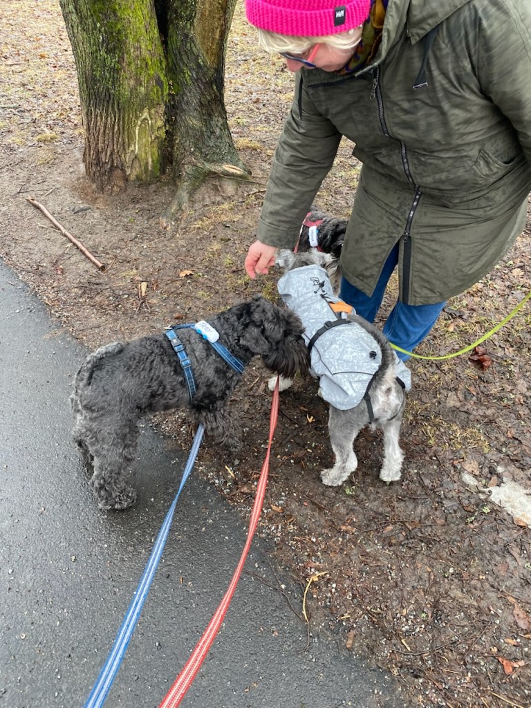 Matte titta där där går Kalle med sin matte, kom så springer vi dit. Jag gillar verkligen honom och hans matte har godis till oss alla.
