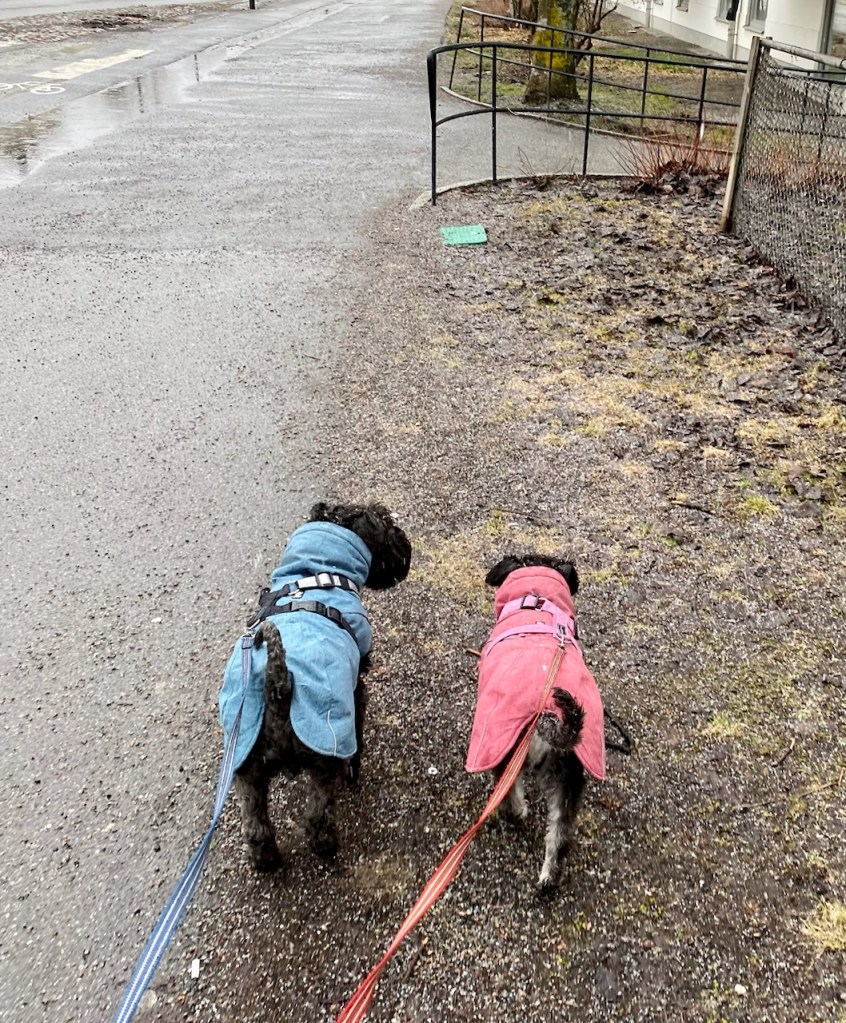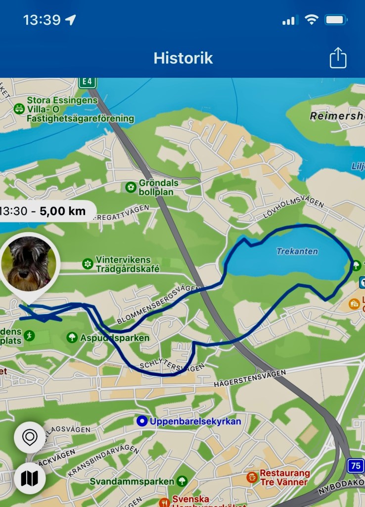 Nu skulle de provas på en fm promenad. De fungerade alldeles utmärkt sa matte och det blir en bra rundtur som man kan se efteråt på en karta