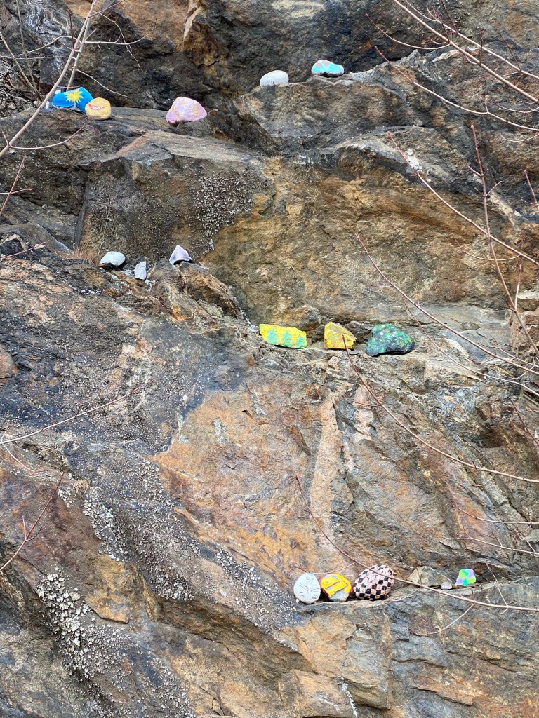Samlingen av målade stenar på den branta bergssidan på rävudden bara växer. Lite fint är det med färgklickar. Jag undrar vilka det är som lägger dem där.
