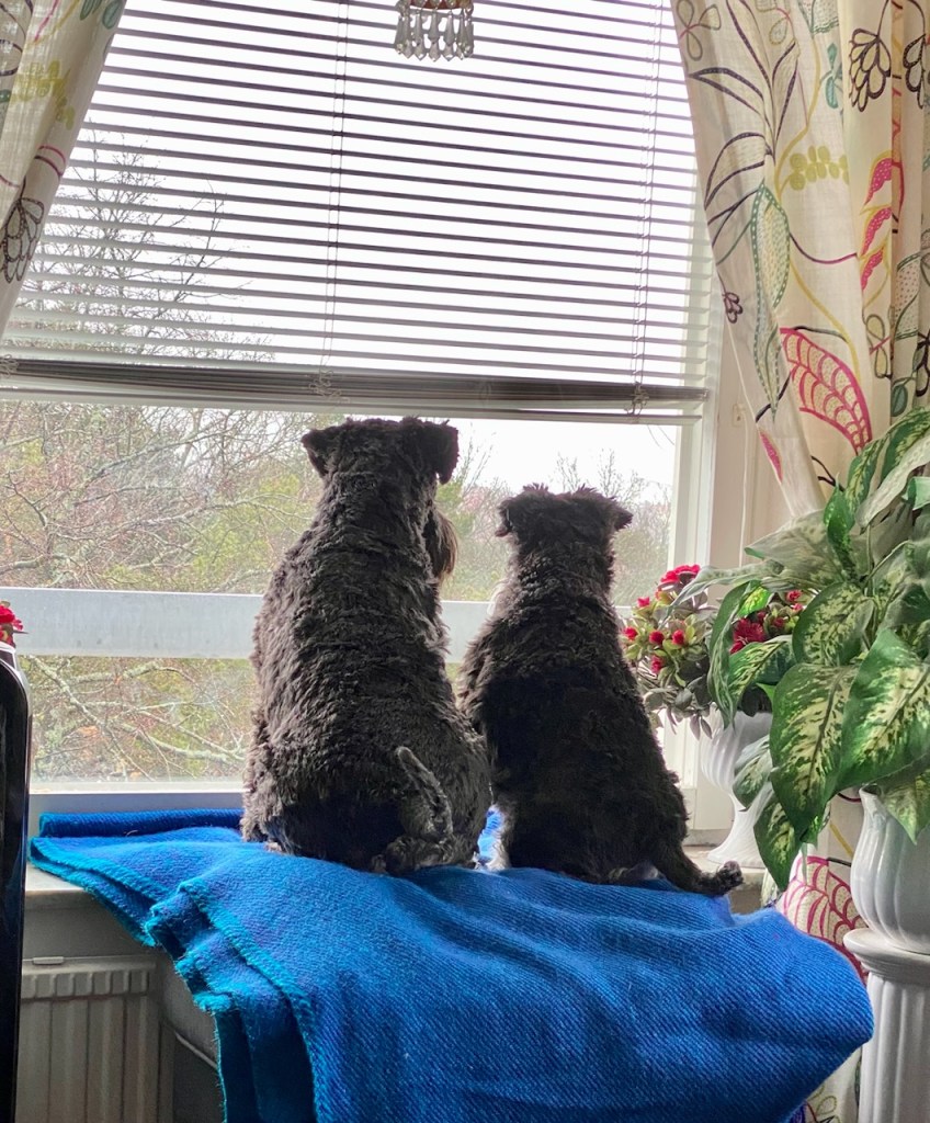 Liten och stor, sida vid sida sitter vi och bevakar omgivningen. Två skator bygger bo i trädet utanför och vi bor så hög upp att vi ser rakt in i bygget. Ekorren säger att han har inte beviljat dem något bygglov vilket de struntar blankt i. Ekorren försöker vräka dem och skatorna kämpar emot, de är inte överens om bygget. Det är riktigt intressant att kolla på dem, undrar hur det kommer gå.