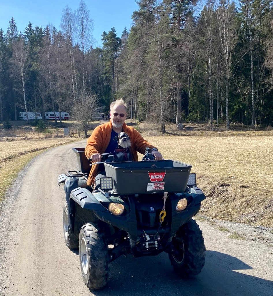 En promenad i den härliga vårsolen. Ute på rävudden finns stenhögar och på dem sprider matte ut godis. Sen får vi jobba med nosen för att hitta alla godbitar. Jag menar varför inte bara bjuda på dem ur handen. Det är mycket att söka av för man kan ju inte lämna någon bit till någon annan, eller hur.