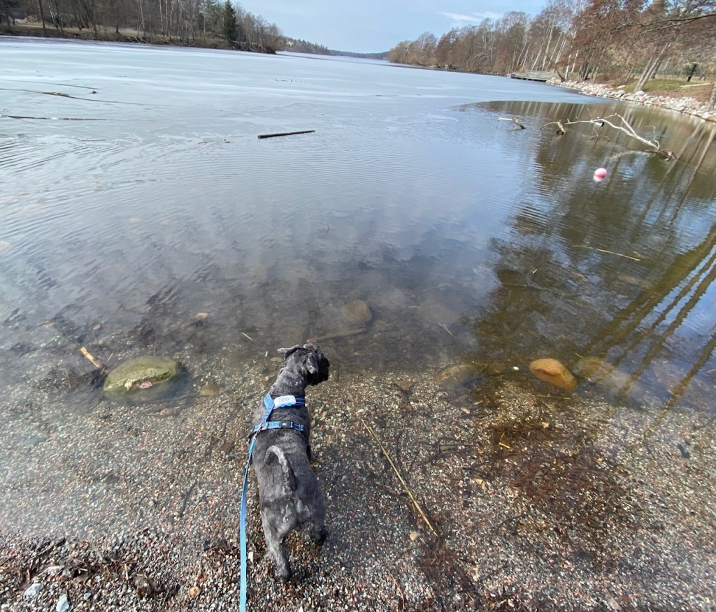 Badplatsen inspekterad och den såg ok ut. Nu väntar vi bara på lite värme i vattnet.
