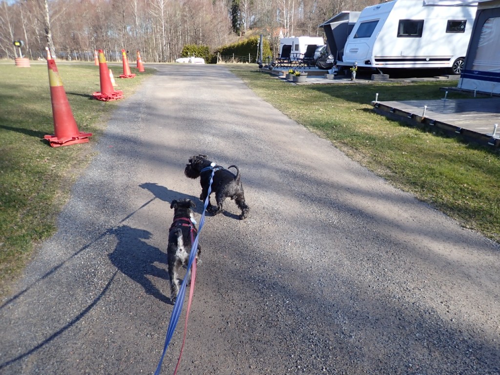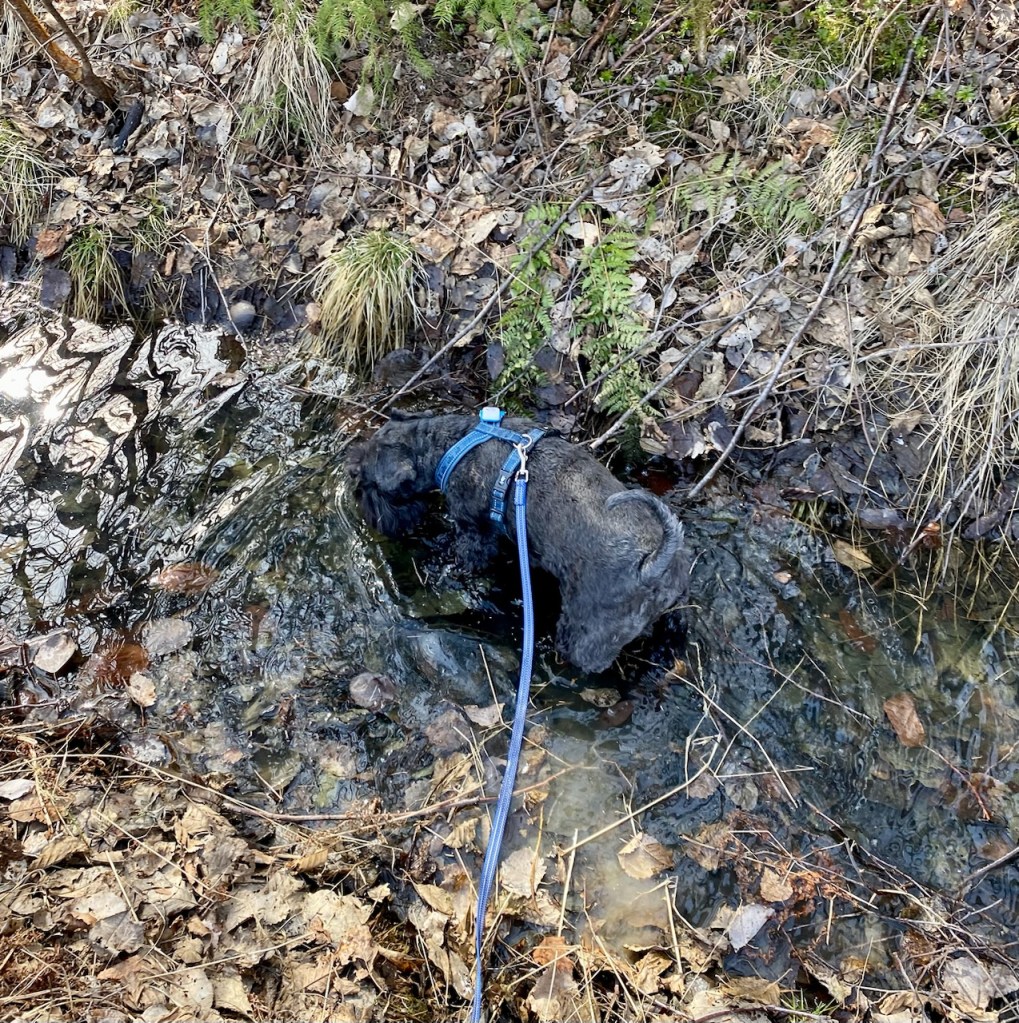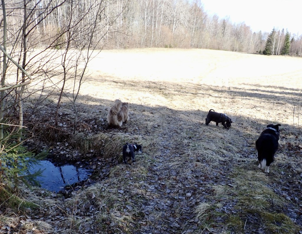 Äntligen fria tassar på stora sorkängen. Klart och fint vatten i diket som smakar ljuvligt.