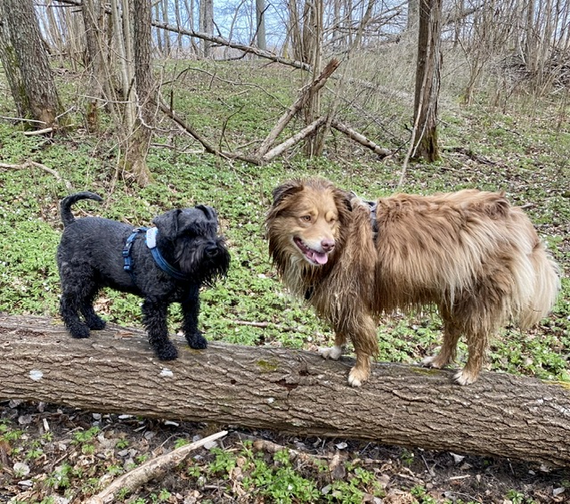 Godistiggeri pågår, båda går utan någon uppmaning balansgång på det fallna trädet. Sen förväntar de dig godis och visst fick de det.