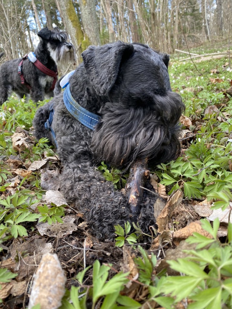 Troy hittade en murken pinne som var alldeles underbar och så blev han helt upptagen med den. Då får jag hålla koll på omgivningen.