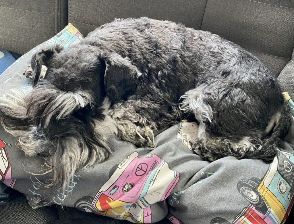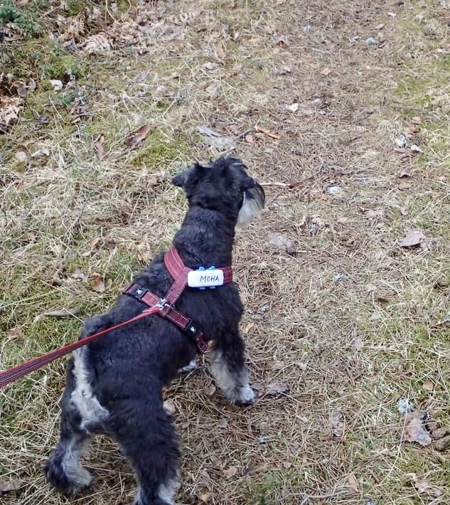 Plötsligt känner jag att nu är skuggan bakom oss, den är nära. Jag står på helspänn och avger min värsta varningsmorr. Den kommer långt ned från baktassarna, förstärks i magen och jag visar också mina vita fina tänder. Jag varnar skuggan att kom inte hit, vi är många här. Mattarna och kompisarna blir väldigt imponerad av mitt sätt att varna GRRRRRR. Vi fortsätter tillbaka till bilarna.