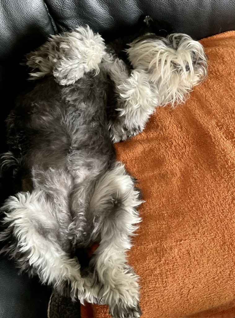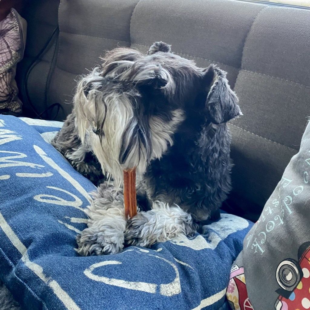 Äntligen tyst, lugnt och skönt. Kopplar av med en Dentastix och det är härligt.