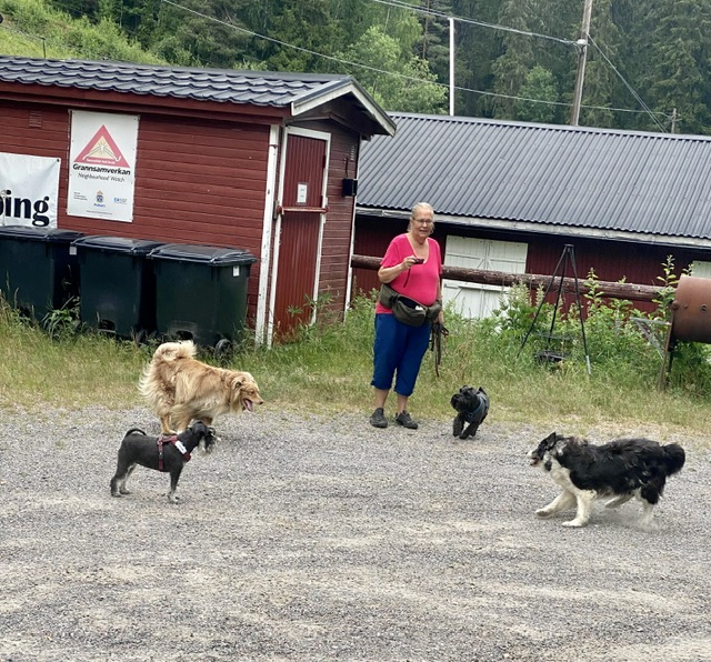 Matte kolla det är Helena och skogsröjargänget. Vi sprang dem till mötes och de oss, alla hälsade gott på varandra.