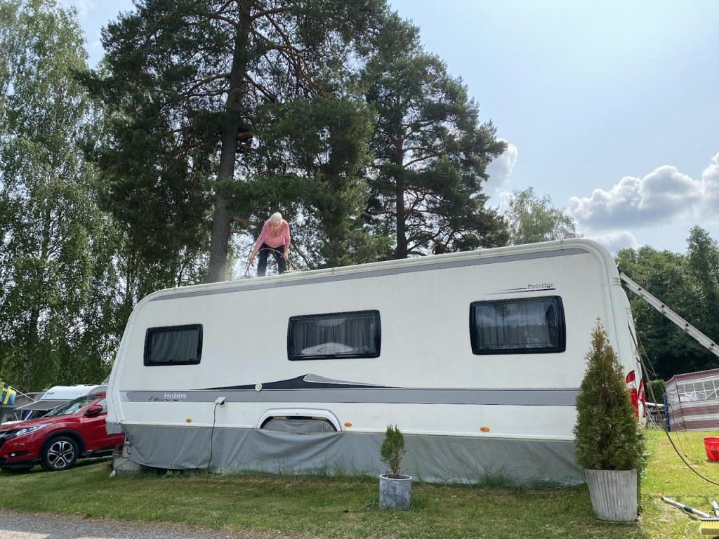Matte vad gör du!!! Uppe på taket på grannens husvagn!