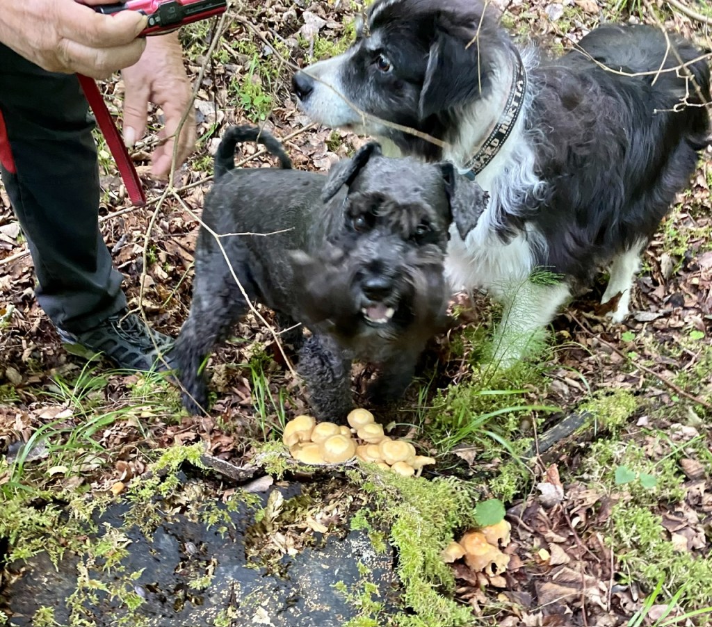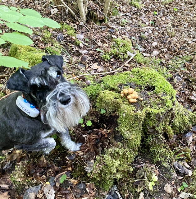 Halååå! Här finns det också. Jag visar tydligt var svampen är genom att hålla upp ena framtassen och peka med nosen, matte kallar det för Pointer -looken. Fram med osttuben nu.