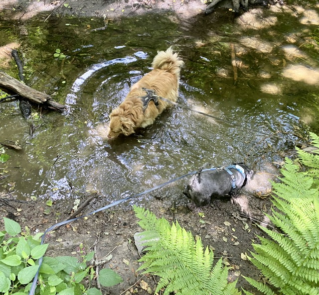 När vi gick vid sidan om bäcken måste naturligtvis badgalningarna i igen och plaska.
