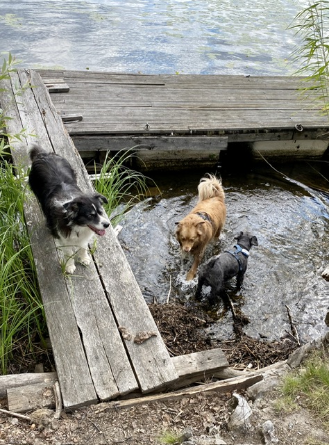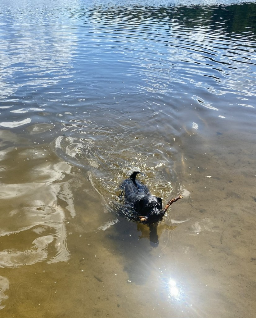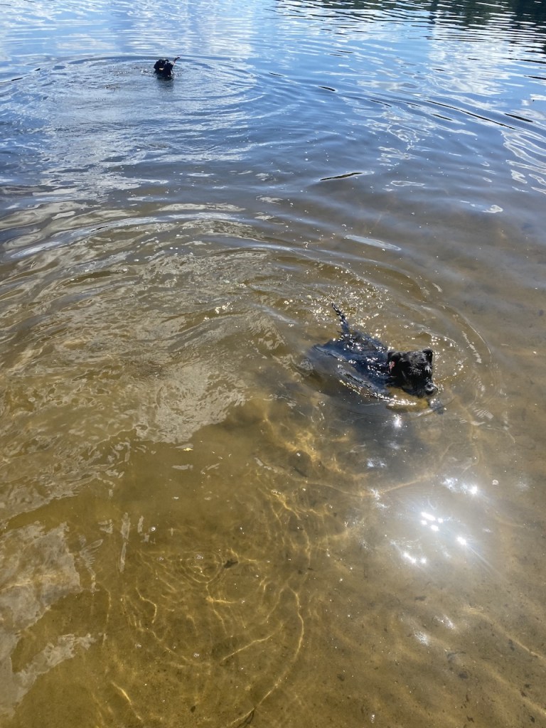 Söndagen började med ett besök vid växthuset och sen åkte vi ned till sjön för att bada. Idag är både luften och vattnet tillräckligt varmt för att även jag skall hoppa i. Det blev faktiskt flera vändor. Även om jag simmar bra håller jag mig nära land, inte alls så långt ut som Troy.