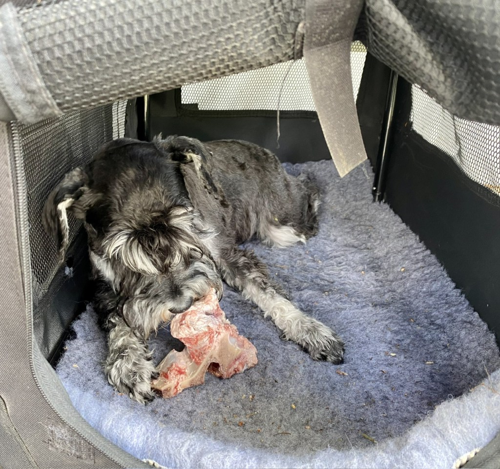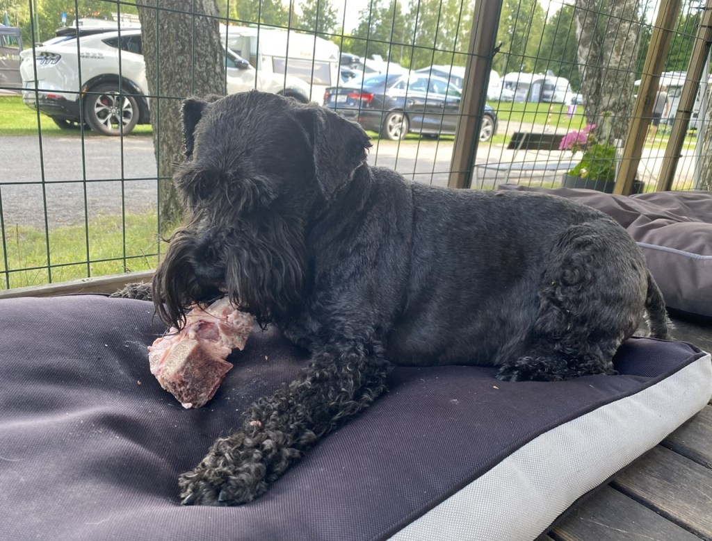 Efter bad och simning blir man både trött och hungrig. Då smakar ett köttben extra gott. Detta var väldigt branför det fanns mycket kött på det.