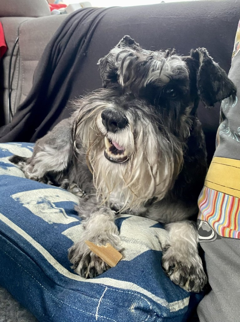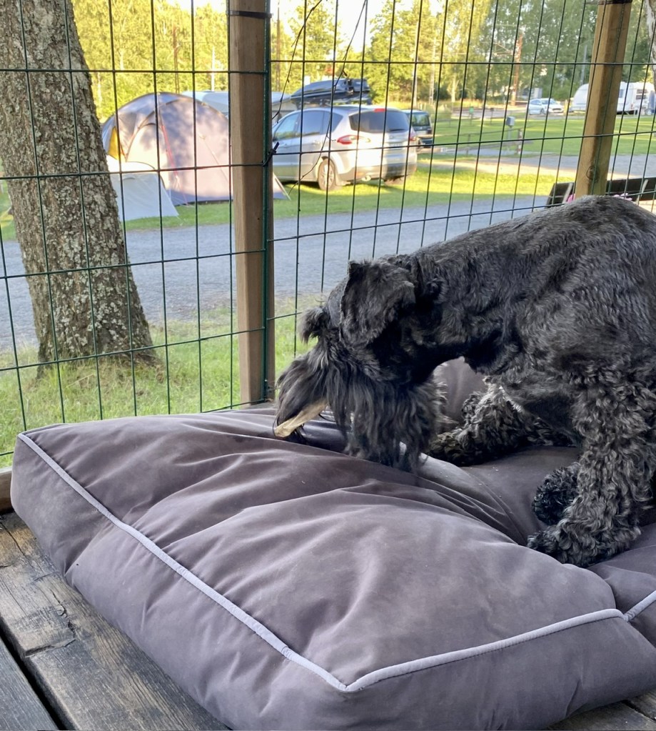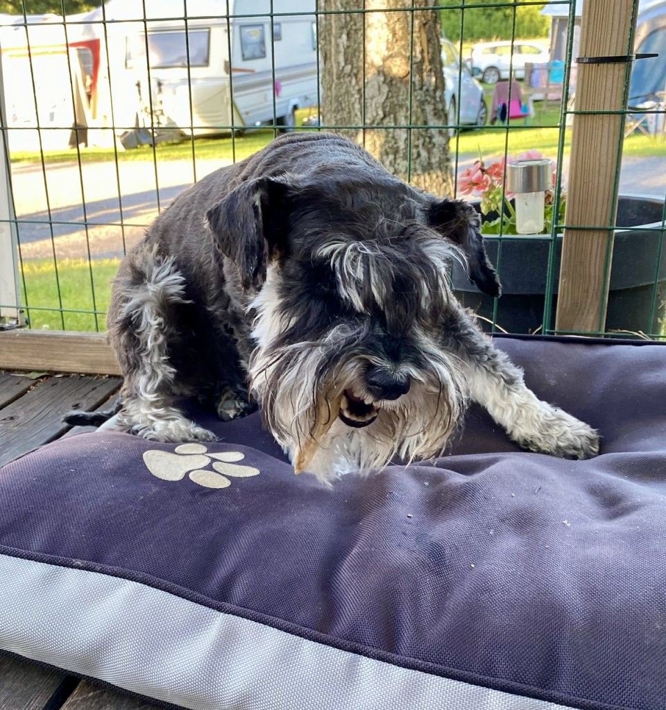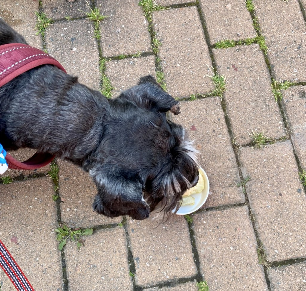 Eftermiddagsfika och det är dags för en smarrig Dentastix. Livet är bra trevligt.