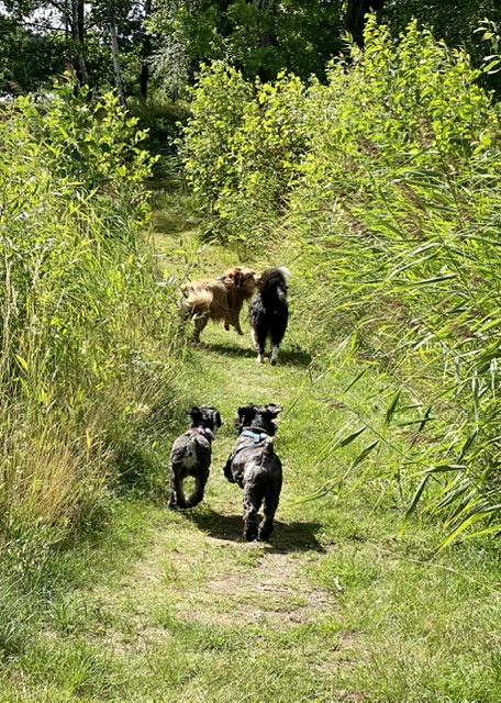 Ny dag och först åkte vi till några platser för svampspaning men vi hittade bara några få champinjoner. Nä nu åker vi till ett ställe där ni kan få springa på fria tassar sa Helena.