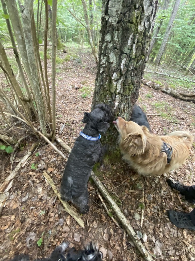 Vi är och kollar till rastplatsen på Sörmlandsledens etapp 20 som är Helenas etapp. Där finns ett bort vi brukar hoppa upp på och få lite godis.