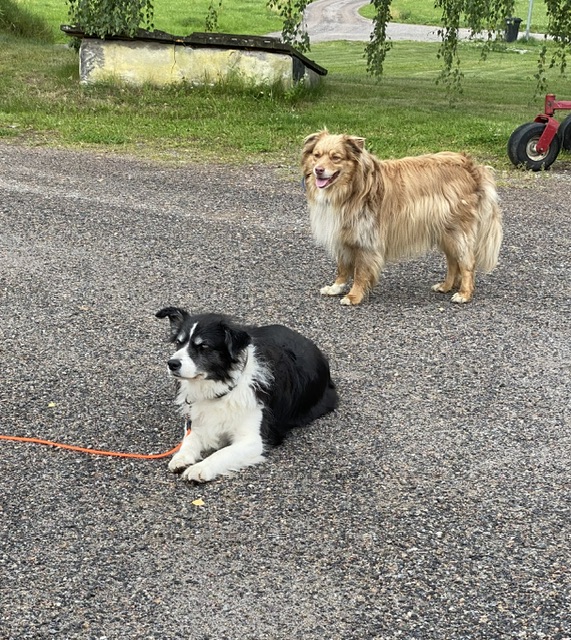 Wilma har börjat löpa så hon är lite loj. Hon verkar leva i en alldeles egen bubbla och när Helena ropar på henne ligger hon bara kvar. Basse står på vakt.