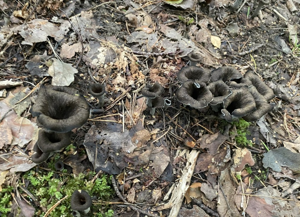 Men kolla här då! Matte böjde sig fram och sa men kära nån, det är fullt av svarta trumpet svampar. Det kryllar sv dem sa Helena. De var så mycket av dem så vi slapp jobba vi fick kuta runt och bara ha det roligt medans mattarna plockade för glatta livet.