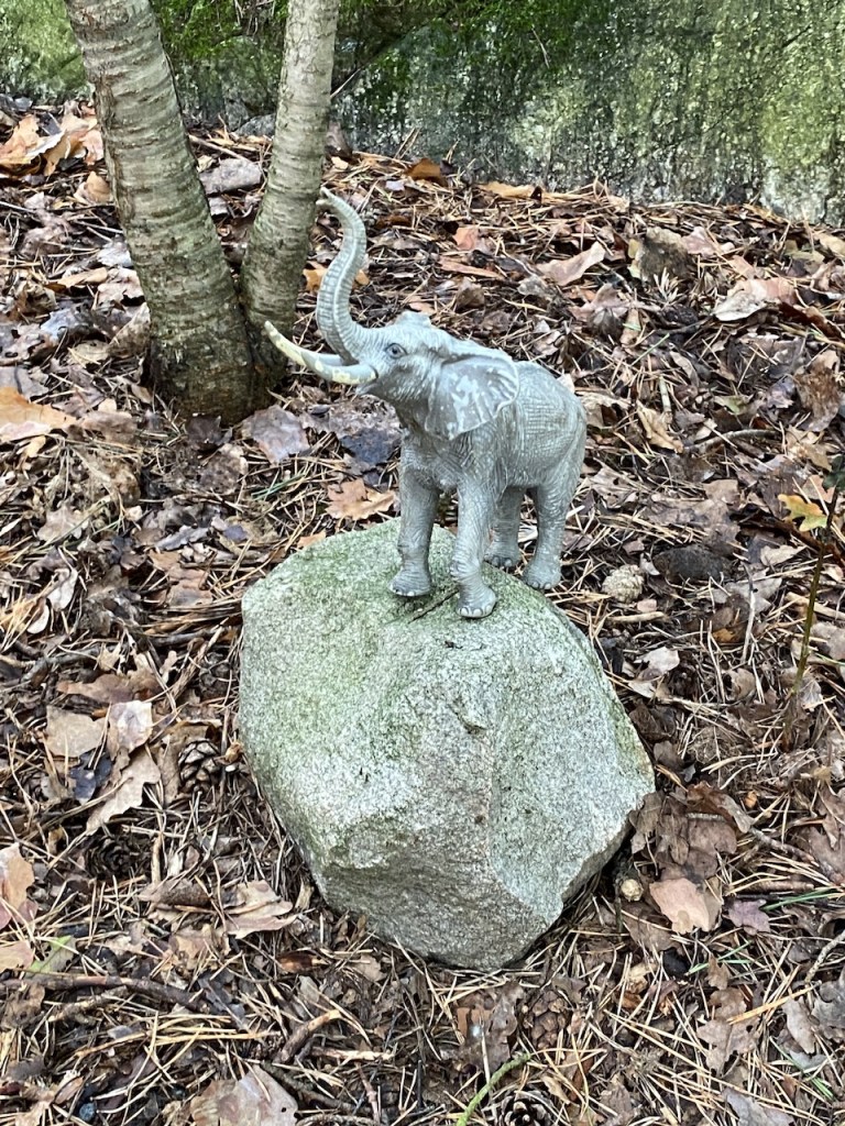 I skogen kan man hitta konstiga saker. Denna gång en elefant som stod alldeles ensam och trumpetade.