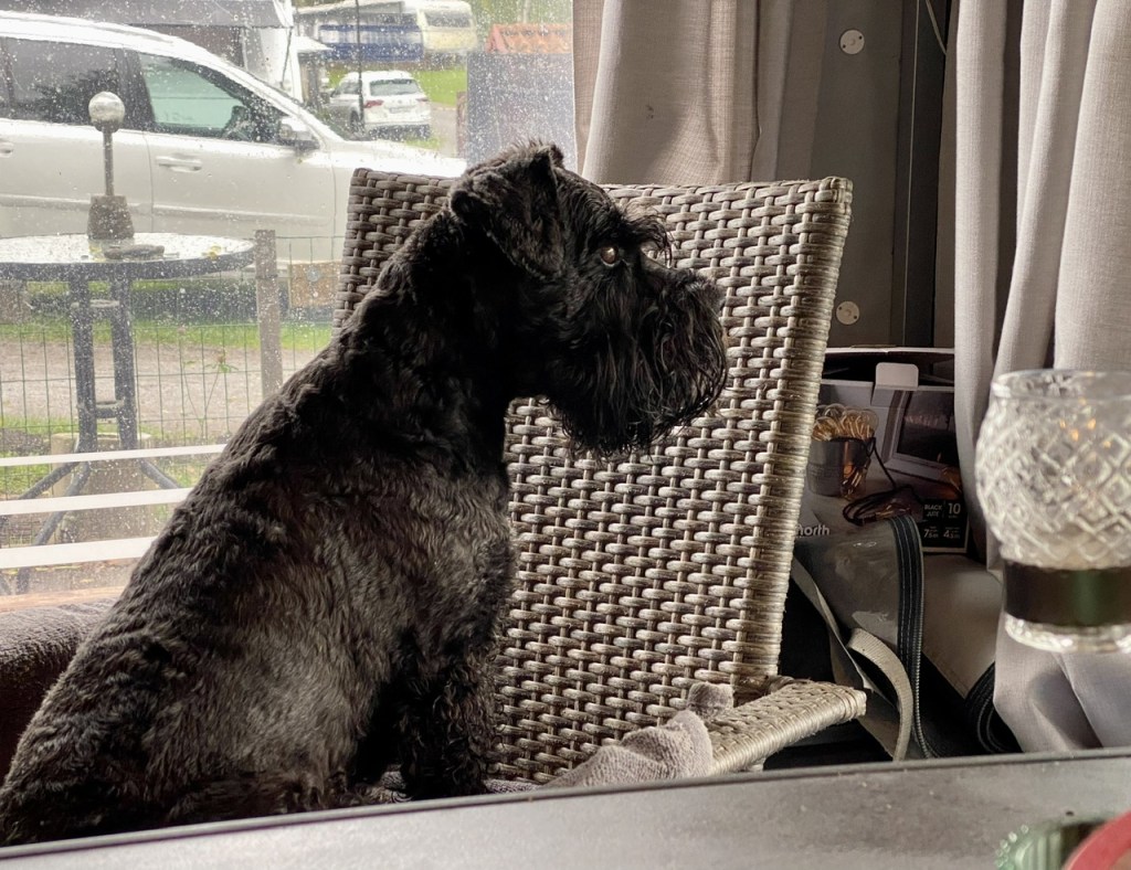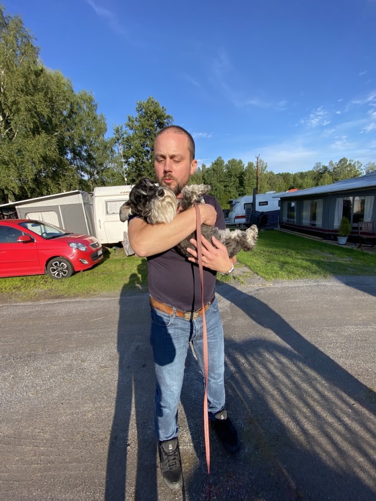 Tillbaka till vagnen och efter en kvällspromenad i regn är det skönt att värma sig framför kaminen. I morgon får vi ta skogsturen för oss själva för Wilma och Helena håller på och utbildar några hundar i svampsök. Väck mig när det är dags att gå och lägga oss.