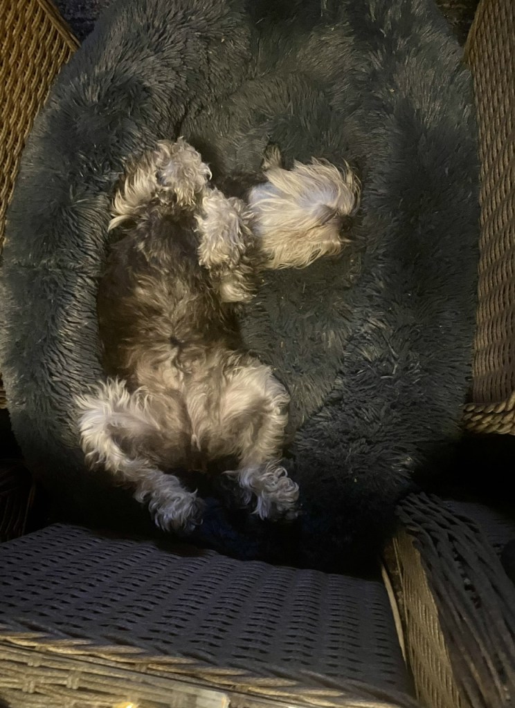 Ahhh underbart att ligga i korgen mellan husse och matte. Det strålar en härlig värme från kaminen och hela förtältet är varmt. Nä jag behöver inte gå någon nattsväng jag stannar här.