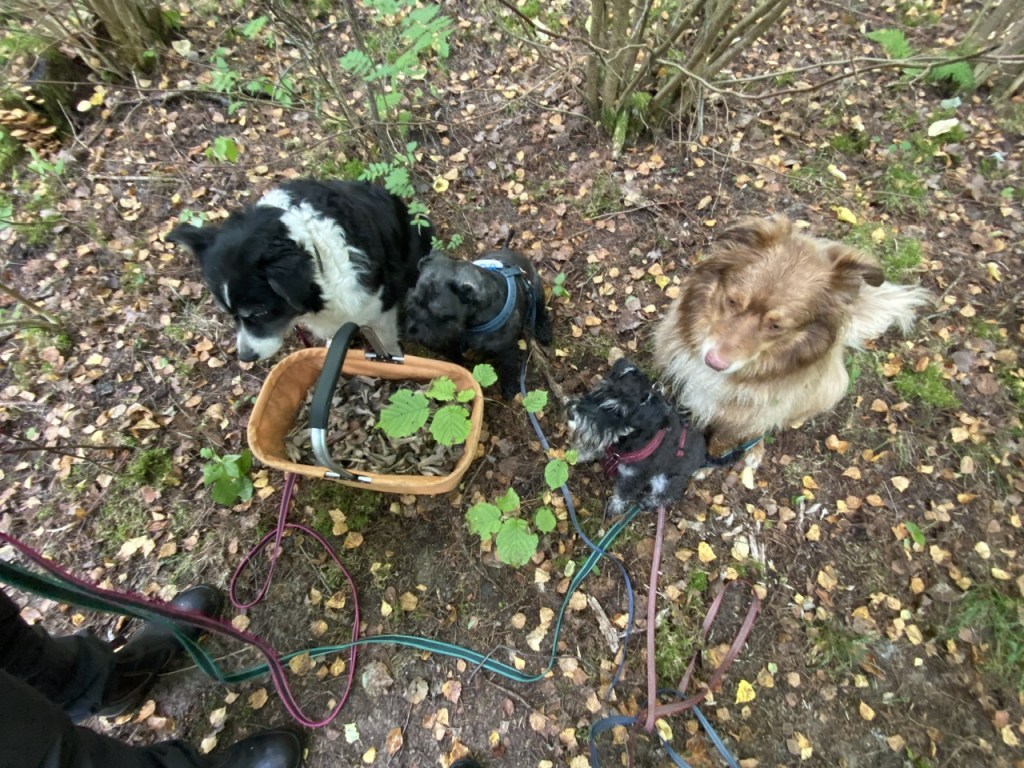 Det är ett väldigt farande men nu är vi i skogen igen. Mattarna behöver ingen hjälp att leta svamp för här finns överallt.