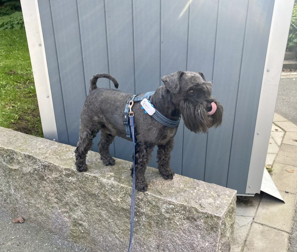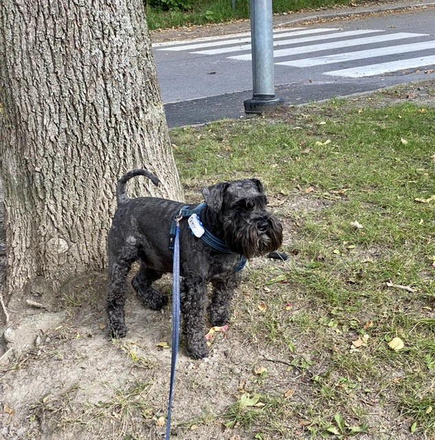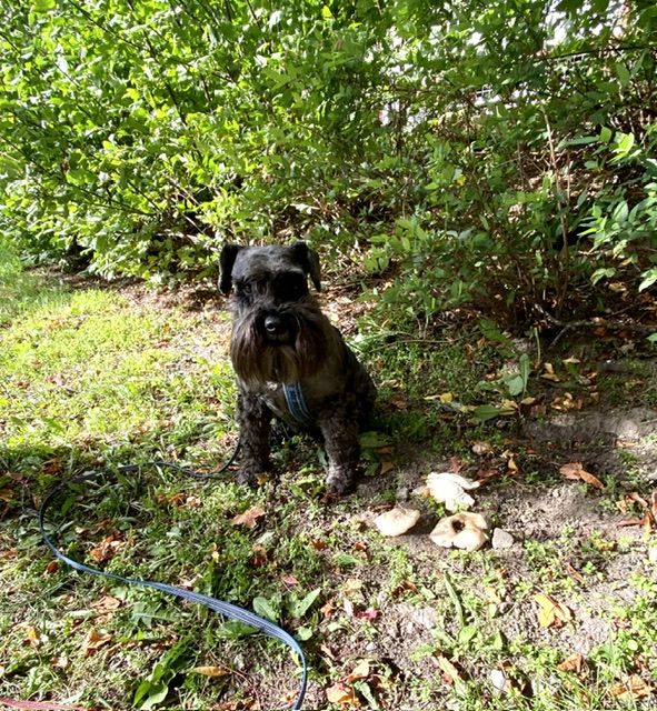 När vi kom ut från garaget såg husse att på gräsmattan på andra sidan gatan fanns det några gamla svampar. Han har inte sett hur vi gör när vi söker svamp så han frågade oss ”var är svampen ”? Du….. sa jag till Troy tänk på att husse inte har tränat svampsök så du får vara tydlig när du markerar. Han sa OK så gick fram till svampen och satte sig, tittade på husse och sa här är de. Husse var mäkta imponerad och vi fick godis. Jag sa till Troy att vi får träna honom bättre så han ser när vi markerar och framför allt att han har osttuben med sig.
