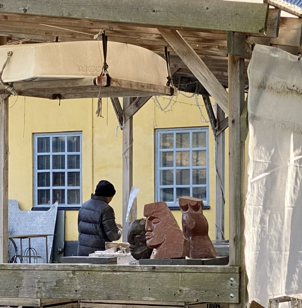 Kolla det har kommit några ansikten i stället för fiskar. Det finns alltid något att kolla på vid skulpturens hus i Vinterviken.