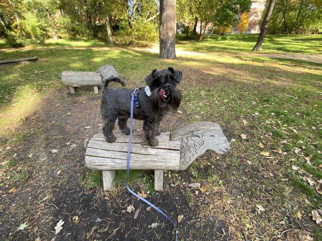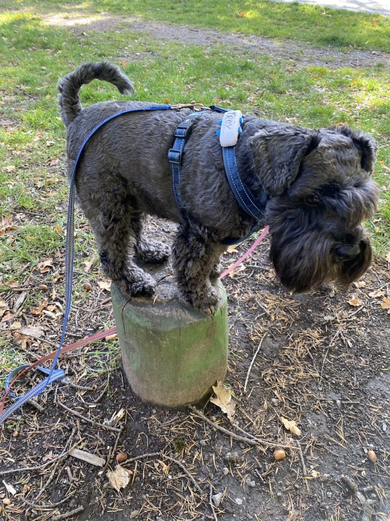 Balans har han, hoppa upp och bli ståendes på en sån liten yta. Sådana konster belönas med gooodis.