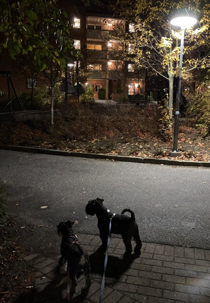Här har vi haft cirkus, cirkus Eriksson. Det börjar med att matte saknar Troy. Hon ropar och letar överallt men ingenstans står han att finna. Men mumlar hon har jag stängt ut honom i förstugan kanske, det har hänt förr när hon varit ute med sopor. Nä han är inte där heller. Nu börjar man kunna spåra en lite oro i mattes röst, Troy var är du kom får du godis, ingen Troy visar sig. Moha säger hon vet du var han är, klart jag vet. Jag går in i sovrummet och ställer mig på tre ben med nosen pekande mot sängen säger ett dovt vuff. Sängen uppvisar en märkligt stor bula. Nä…. säger matte är det där han är och lyfter lite på madrassen. Jo se på attan, han är där. Nu börjar pjoltet, men varför ligger du där, har du gömt dig? Lilla knasbollen. Suck… säger jag, matte det regnar snöslask ute, har du inte sett det? Nåja säger hon du får väl ligga där då. När vädret börjar klarna upp kommer han fram och sträcker på sig, ger ett av sina jamande ljud som betyder, det är dags att gå på promenad nu.