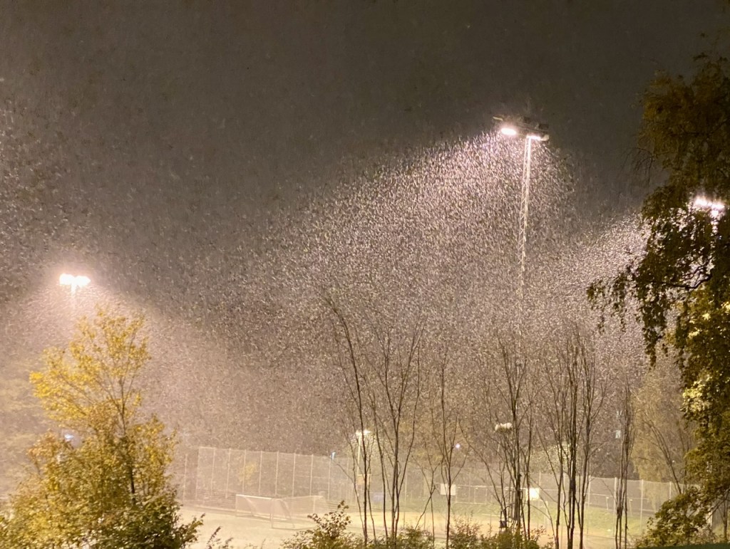 Vad är detta kommer det inte lite vitt uppifrån. Jo ta mig tusan, det snöar ju. Nu tar vi en snabbrunda för detta är inte kul om det ökar på.
