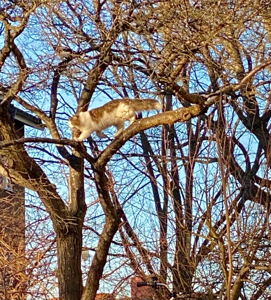Kolla va! En kattastrof uppe i trädet. Hur går det till?