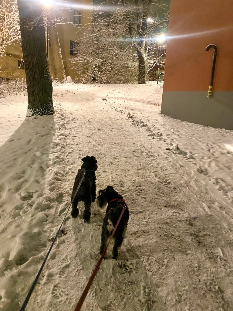 Nu är det ganska bra väder. 4- grader uppehåll inga jackor och inga snöbollsben. En sak som också är bra är att det är tyst inga smällare.
