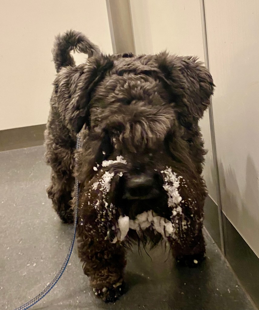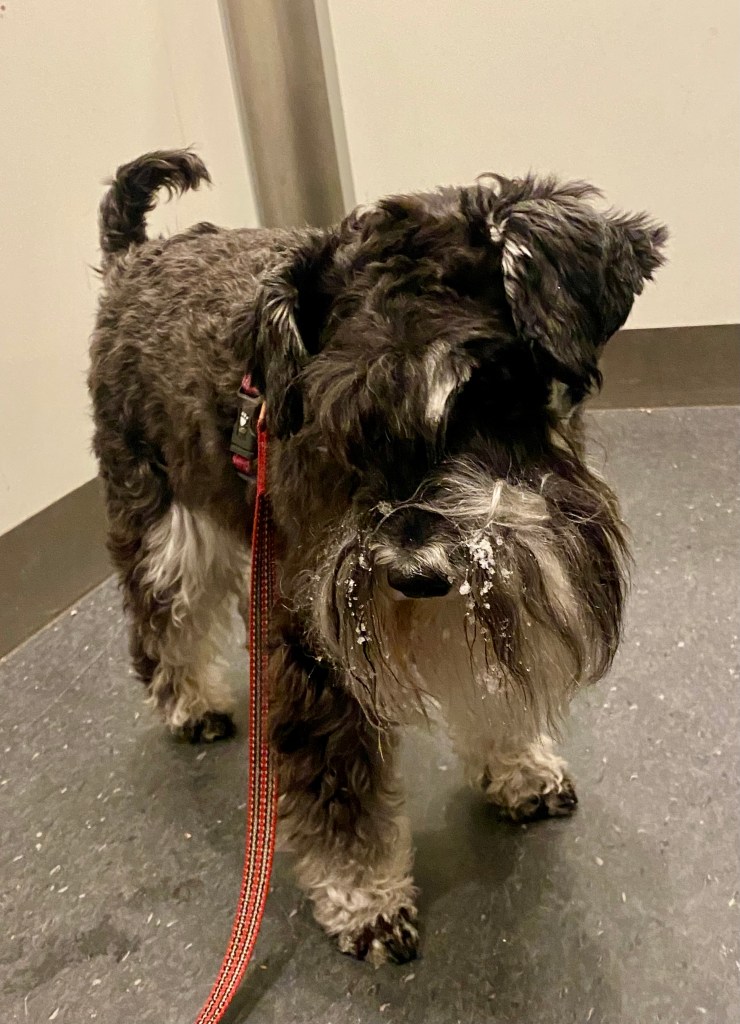 Men så är det det där med snö och is i skägget! Matte envisas med att borsta bort det med en karda. Tomten…. kan man önska sig att kardan försvinner?