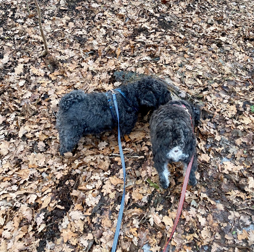 Nähä nu är det kokta fläsket stekt, matte kallar oss för lurvitutter och hårbollar hon snackar om pälsvård. Jah där åkte Troy fast och vips då hamnade han på trimbordet. Det skall fixas och först ut är Troys ben. Det blev en rejäl hög av bara benhår. Sen bryter matte för promenad, vi får ta det pö om pö.