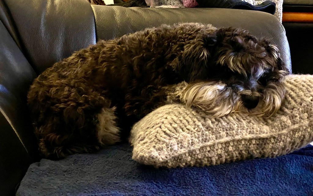 Efter en promenad i det fina vädret är det skönt att vila på soffan med flera kuddar.