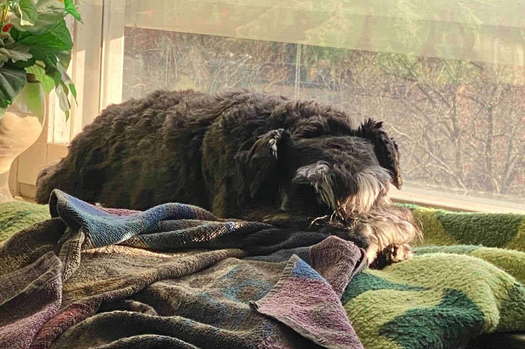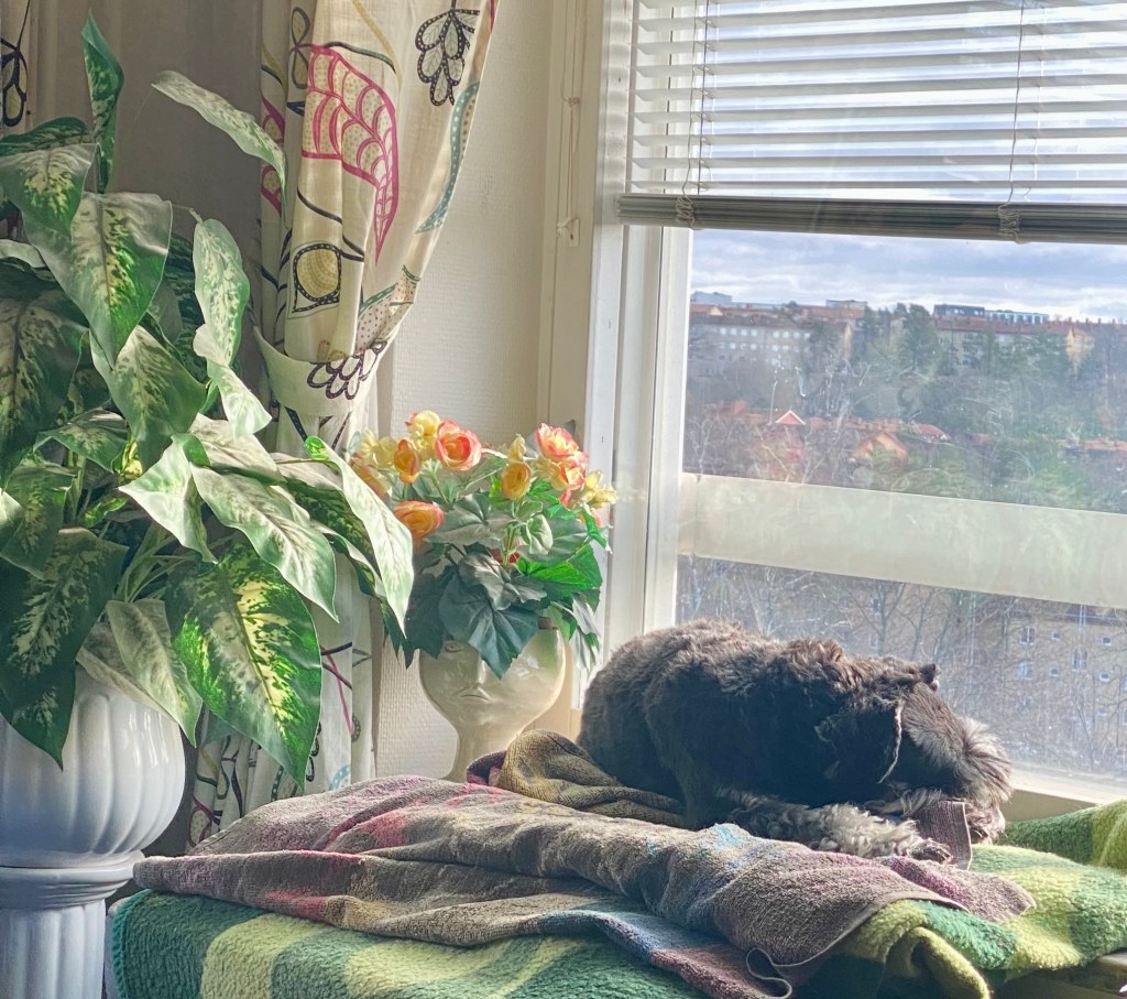 Solen är framme och det är skönt att ligga i fönstret och värma upp sig.