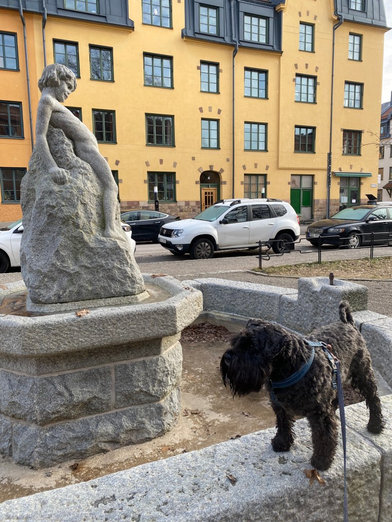 Än finns det inget vatten i fontänen vi får vänta så det blir varmare.