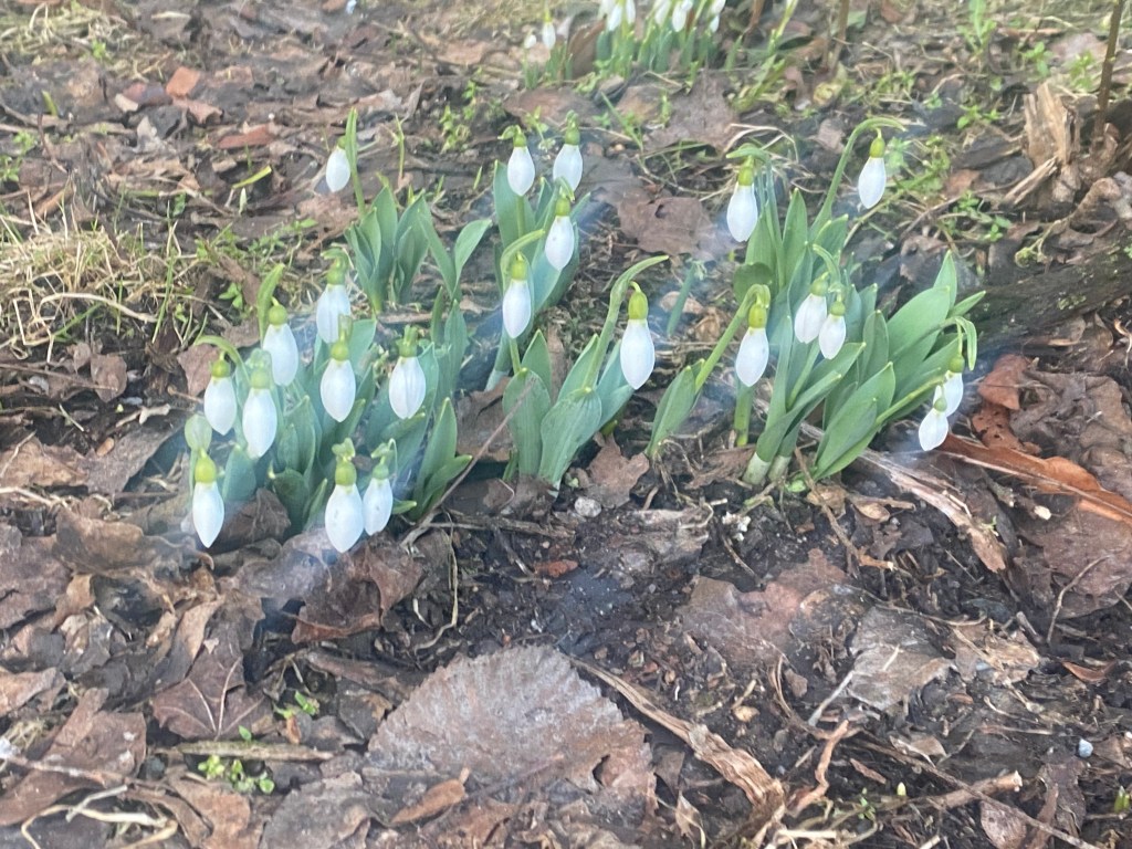 Solen skiner och det är 7 grader varmt. Vårens första snödroppar har kommit fram. Man blir glad av att se dem.