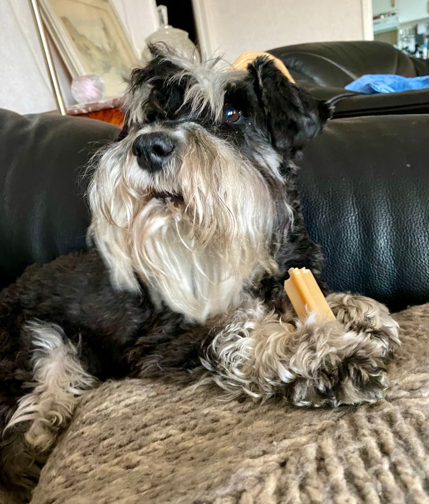 Vad då? Smaskar jag? Inte alls jag njuter av en Dentastix och då man äter något gott äter man med öppen mun, det smakar mer då.