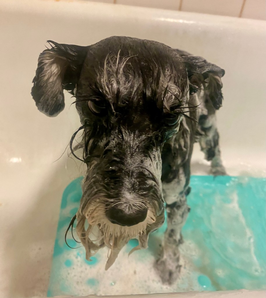 Fy hundan för schampo och badkar. Först åker Troy på en schamponering sen jag.